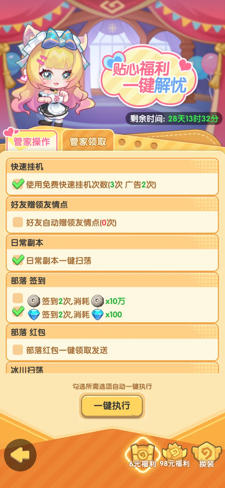 管家系统正式开启,管家小一贴心护航!解锁管家特权,每日任务超轻松,一键操作超省心,丰厚奖励随时收入囊中!小一的更多超能力,就待勇者们进入游戏探索啦~