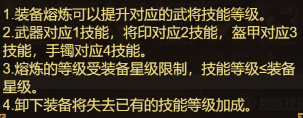 3. 熔炼的等级受装备星级限制,技能等级≤装备星级。