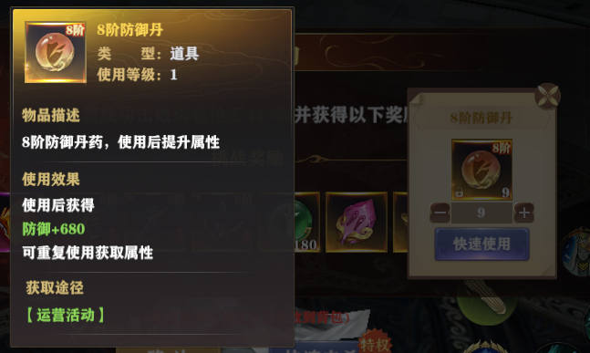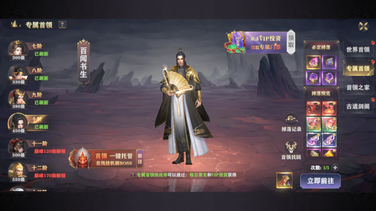等级升得差不多了就去搞boss,有的boss会掉落基础属性丹,无吃用限制;每天必须打满