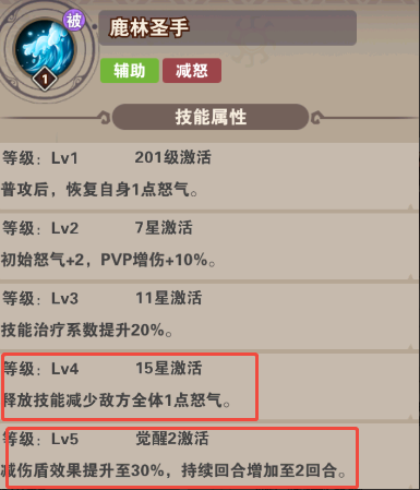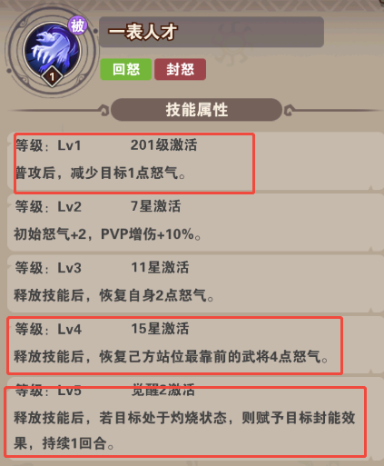 技能:单体爆发并减怒、被动增怒,封能(封怒)