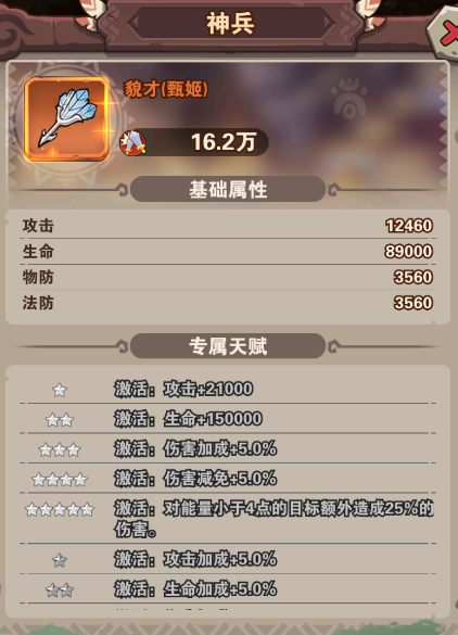 神兵:对能量(怒气)少的额外造成伤害(配合减怒武将、神器镇魂幡减怒可以实现)